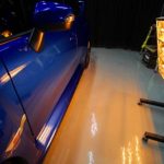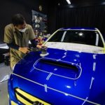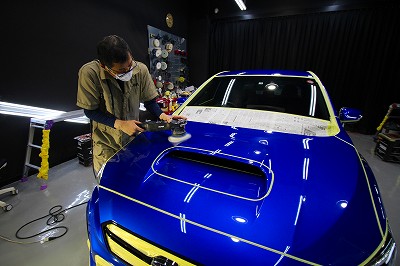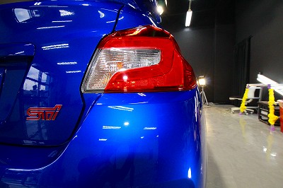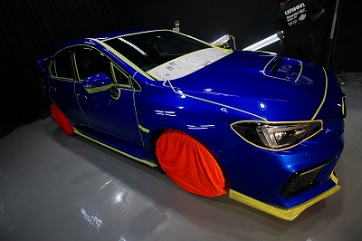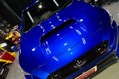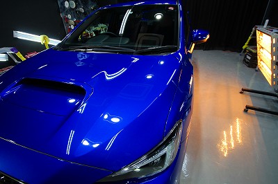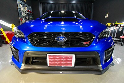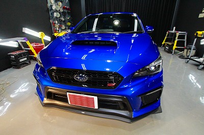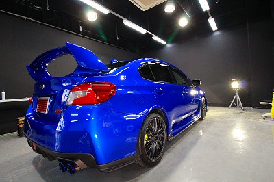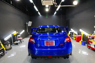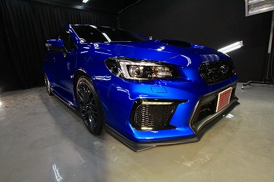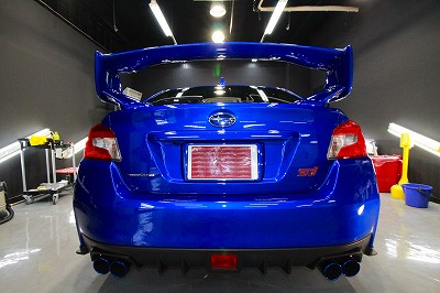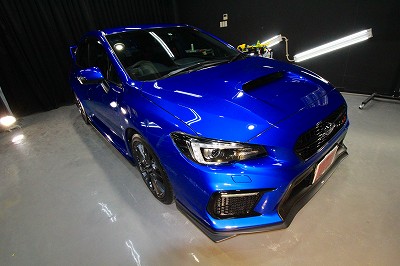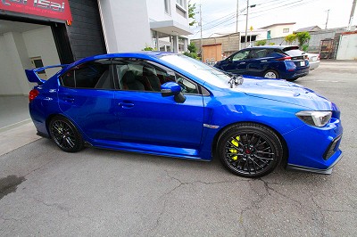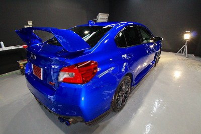大阪府吹田市よりスバルWRX STIのご入庫です!ボディカラーはブルーパール!施工はボディにはルーフ