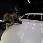 はダイアモンドホワイトメタリック!施工はボディにはG’ZOX艶プラス/ホイールコーティングの二点です!