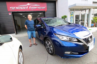 大阪府枚方市より日産リーフのご入庫です!ボディカラーはオーロラフレアブルーパール!施工はボディには