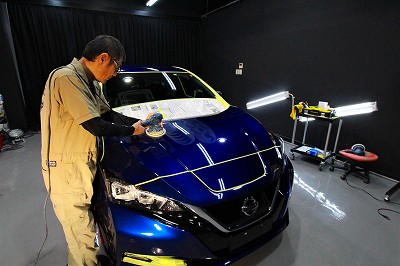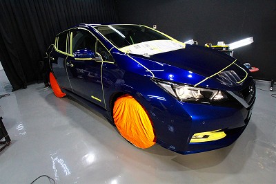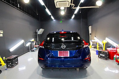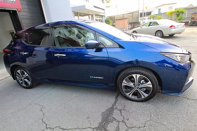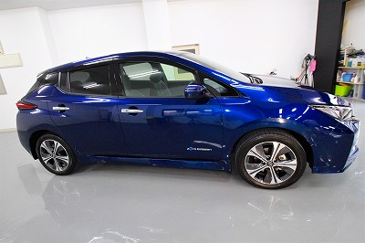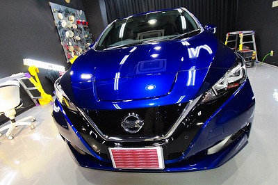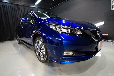 大阪府枚方市より日産リーフのご入庫です!ボディカラーはオーロラフレアブルーパール!施工はボディには