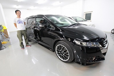 大阪府堺市よりホンダオデッセイのご入庫です!ボディカラーはブラック!施工はボディ全体に付着したペンキ