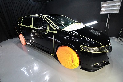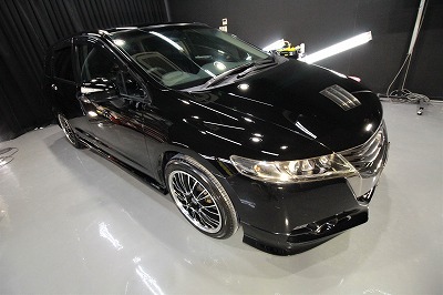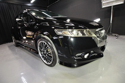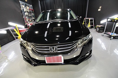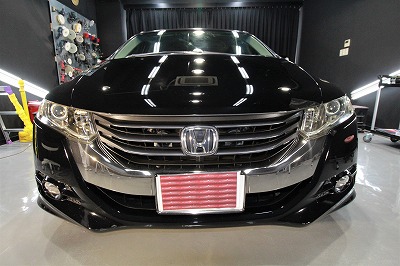 大阪府堺市よりホンダオデッセイのご入庫です!ボディカラーはブラック!施工はボディ全体に付着したペンキ