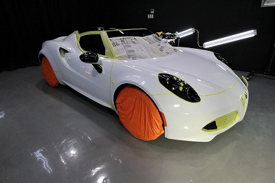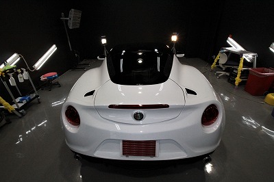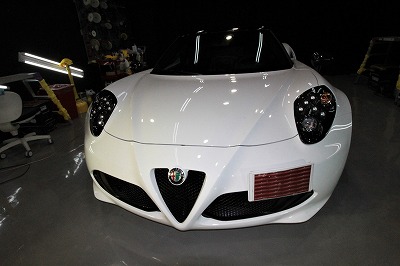 兵庫県宝塚市よりアルファロメオ4Cのご入庫です!ボディカラーはホワイトソリッド!施工はボディには