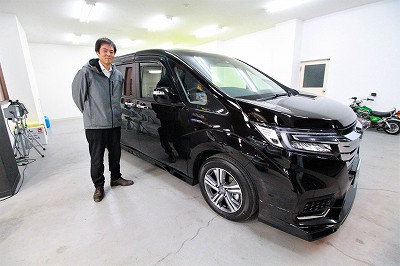 兵庫県伊丹市よりホンダステップワゴンのご入庫です!ボディカラーはスパークルブラックパール!施工は