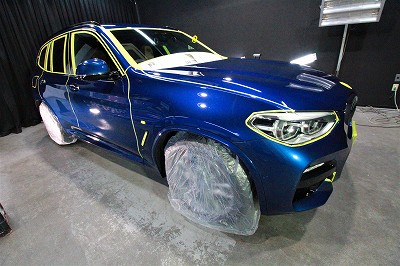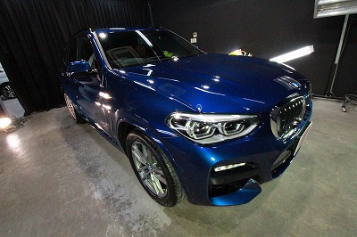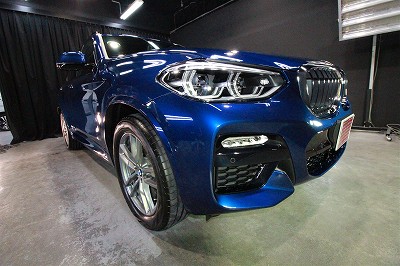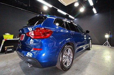 兵庫県芦屋市よりBMW X3のご入庫です!ボディカラーはファイトニックブルーメタリック!施工はボディ