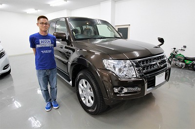 大阪府茨木市より当店のリピーター様が三菱パジェロをお持ち下さいました!ボディカラーはディープブロンズ