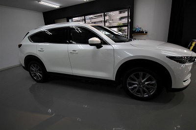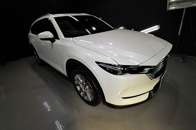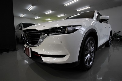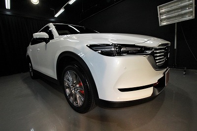 大阪府吹田市より人気のマツダCX8のご入庫です!ボディカラーはスノーフレイクホワイトパールマイカ!