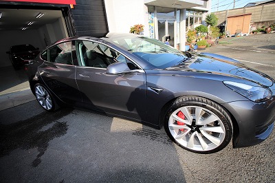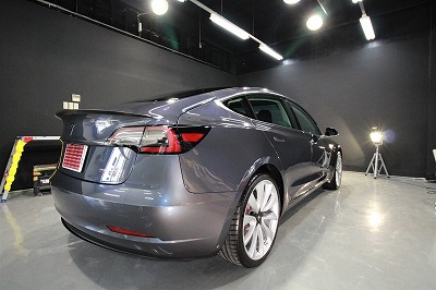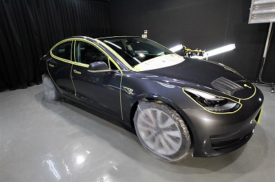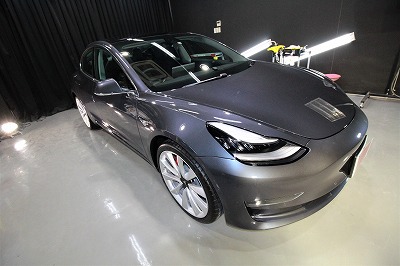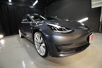 大阪府茨木市よりテスラ モデル3のご入庫です!ボディカラーはミッドナイトシルバーメタリック!施工は