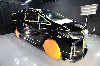 京都市よりトヨタアルファードのご入庫です!ボディカラーはトヨタのブラック202!施工はボディには