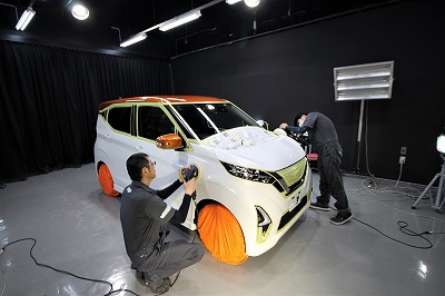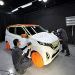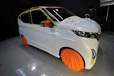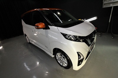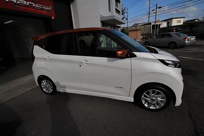 大阪府吹田市より日産デイズのご入庫です!ボディカラーはホワイトパール&ルーフオレンジ!施工はボディ