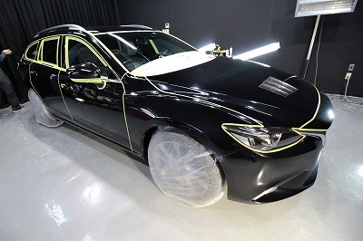 大阪府高槻市よりマツダアテンザワゴンのご入庫です!ボディカラーはジェットブラックマイカ!施工は