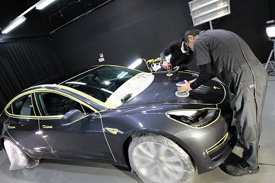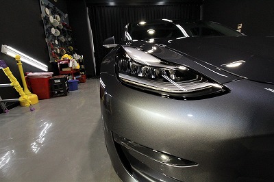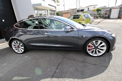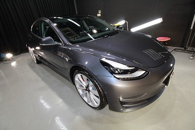 京都市よりテスラ モデル3のご入庫です!ボディカラーはミッドナイトシルバーメタリック!施工はボデには