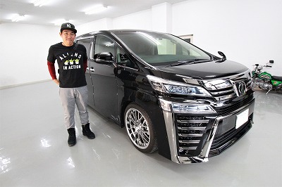 大阪府枚方市より当店のリピーター様がトヨタヴェルファイアをお持ち下さいました!ボディカラーはトヨタ