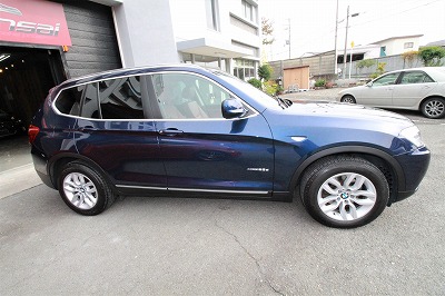 大阪府茨木市より当店のリピーター様がBMW X3をお持ち下さいました!ボディカラーはディープシーブルー