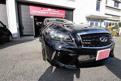 大阪府高槻市より日産フーガのご入庫です!ボディカラーはソリッドブラック!施工はボディにはハイモース