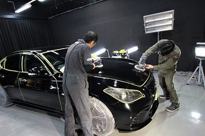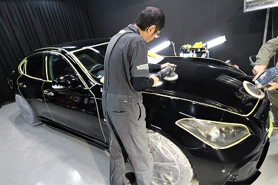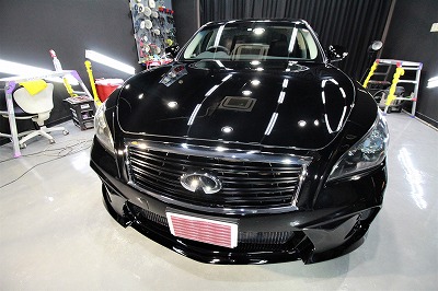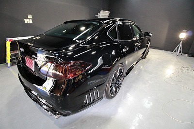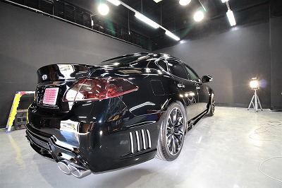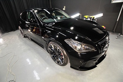 大阪府高槻市より日産フーガのご入庫です!ボディカラーはソリッドブラック!施工はボディにはハイモース