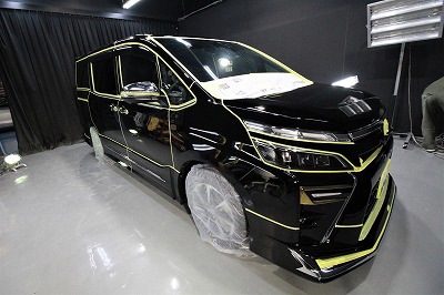 三重県伊賀市よりトヨタヴォクシーのご入庫です!ボディカラーはトヨタのブラック202!施工はボディには