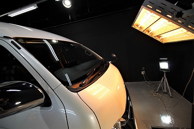 カラーはホワイトソリッド!施工はボディにはハイモースコートザ・ネオ/フロントガラス撥水二年耐久