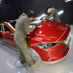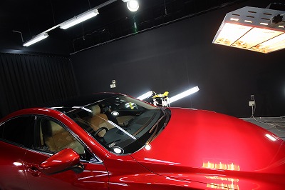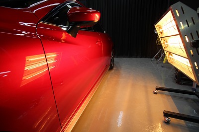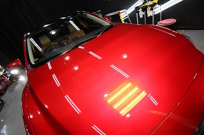 レッド!施工はボディにはハイモースコートザ・ネオ/ホイールコーティングの二点です!施工前のボディの