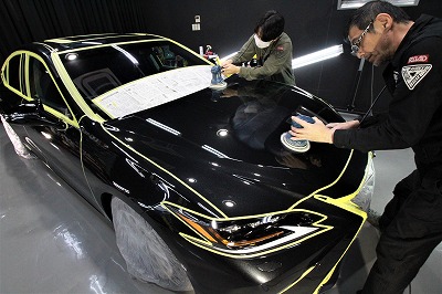 ブラックガラスフレーク!施工はボディにはハイモースコートザ・ネオ/ホイールコーティング/フロントガラス