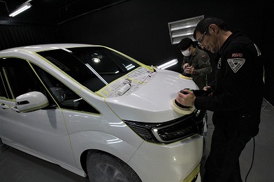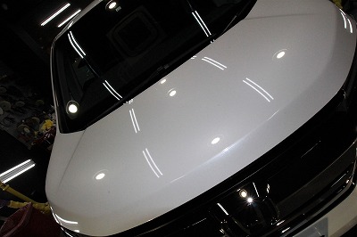 はプラチナホワイトパール!施工はボディにはハイモースコートザ・ネオ(超撥水)/ホイールコーティング