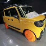 大阪府守口市よりスズキスペーシアギアのご入庫です!ボディカラーはアクティブイエロー ルーフガンメタ