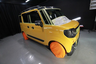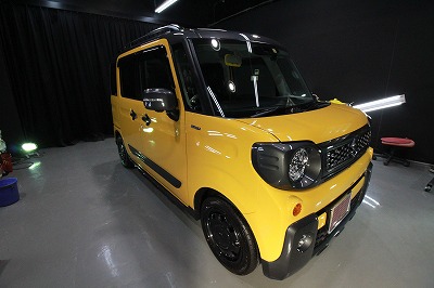 大阪府守口市よりスズキスペーシアギアのご入庫です!ボディカラーはアクティブイエロー ルーフガンメタ