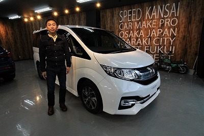 大阪府三島郡より当店のリピーター様がホンダステップワゴンスパーダをお持ち下さいました!ボディカラー