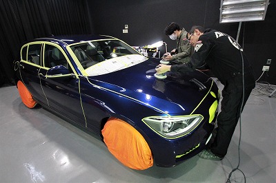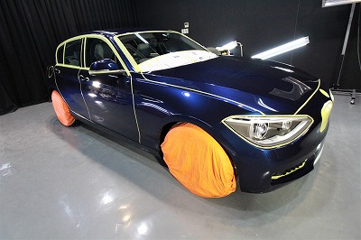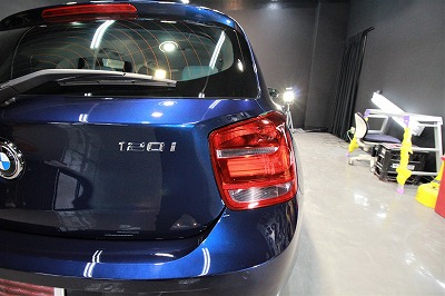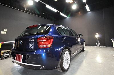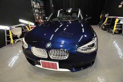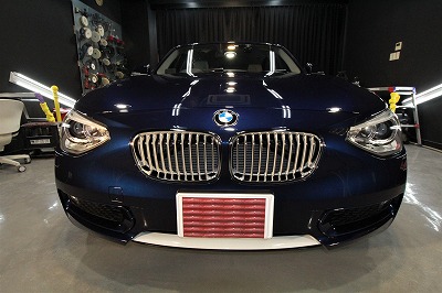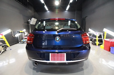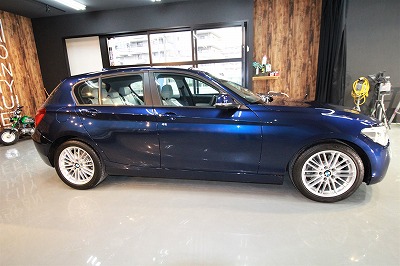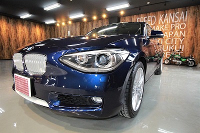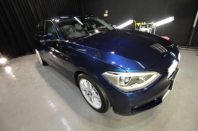 大阪府箕面市よりBMW120i のご入庫です!ボディカラーはブルーメタリック!施工はボディにはハイモース