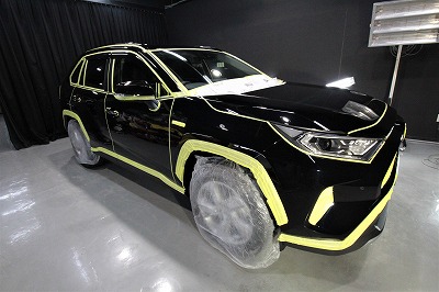 大阪府茨木市よりトヨタRAV4のご入庫です!ボディカラーはアティチュードブラック!施工はボディには