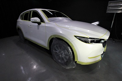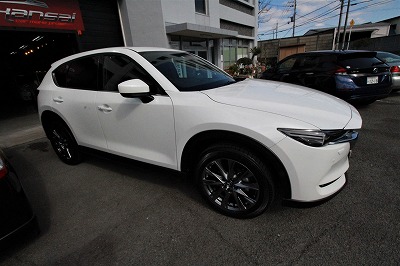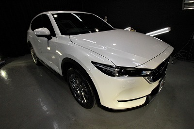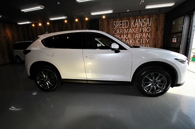大阪府箕面市よりマツダCX5のご入庫です!ボディカラーはスノーフレイクホワイトパールマイカ!施工は