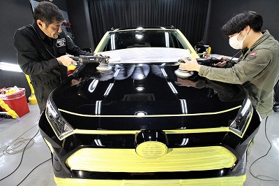 セラミックトリプルコート+1(4層)サイドにはクォーツ/ホイールコーティングの二点です!施工前のボディ
