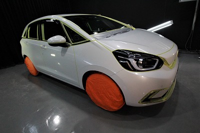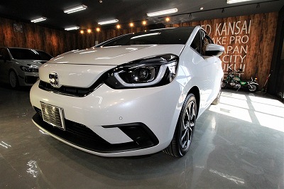 大阪府茨木市よりホンダフィットのご入庫です!ボディカラーはプラチナホワイトパール!施工はボディには