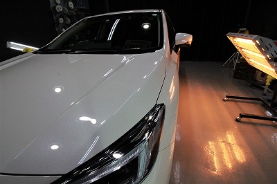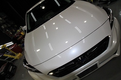 ホワイトパール!施工はボディにはG’ZOX艶プラス/ホイールコーティング/フロントガラス撥水二年耐久