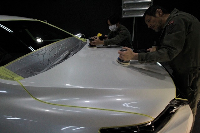 撥水二年耐久ハイパービューの三点です!前回の施工から五年が経ちボディにはシミが多かったですが当店の