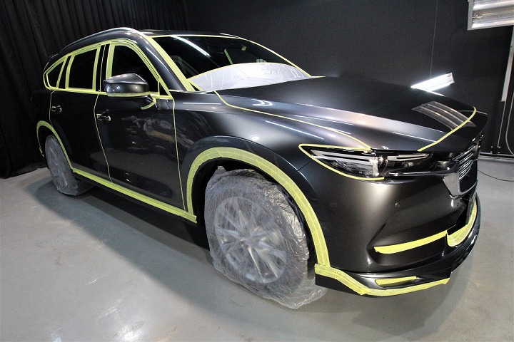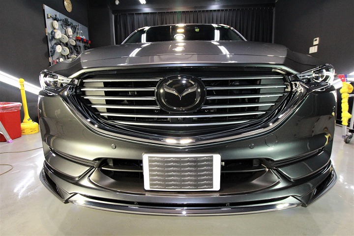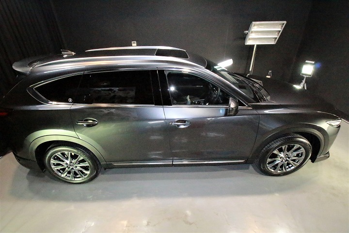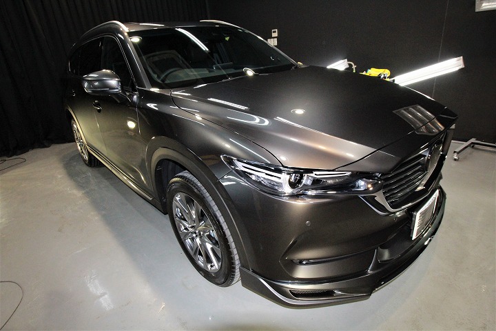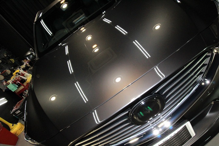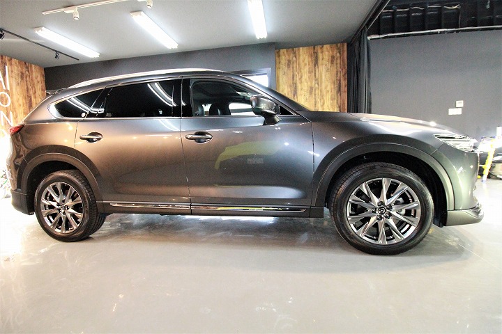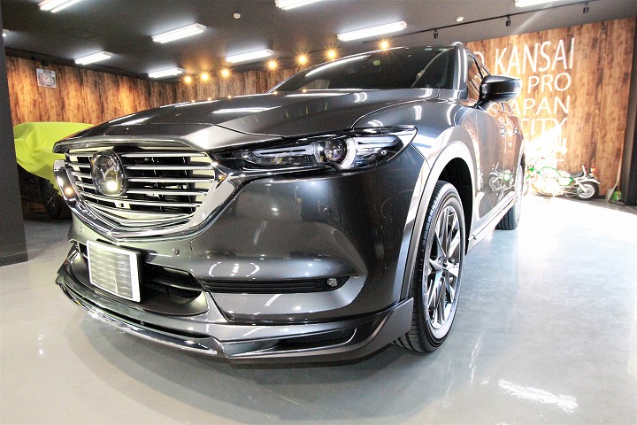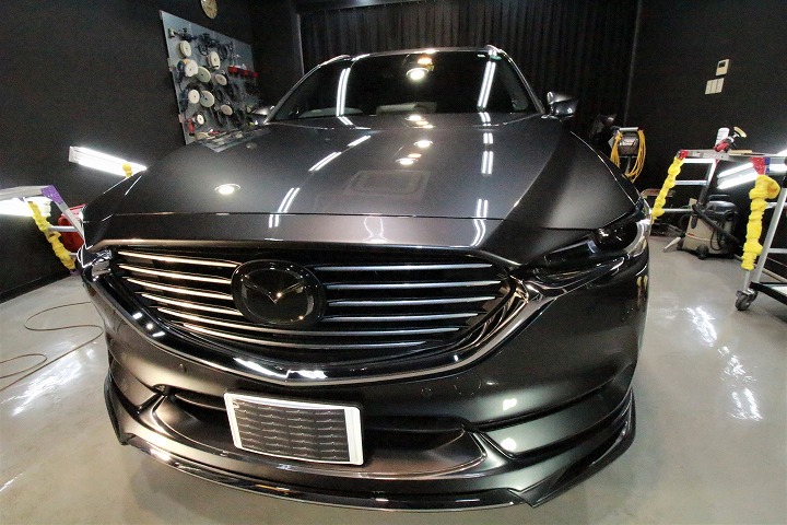 大阪府吹田市よりマツダCX8のご入庫です!ボディカラーはマシングレー!施工はボンネットにはセラミック
