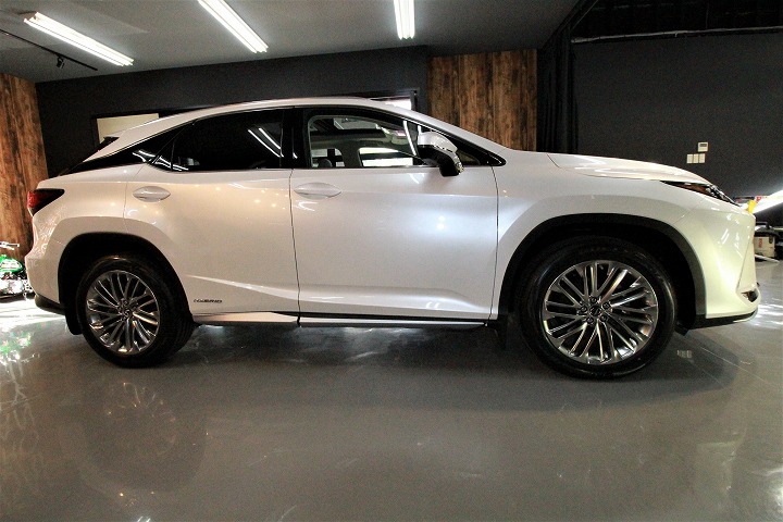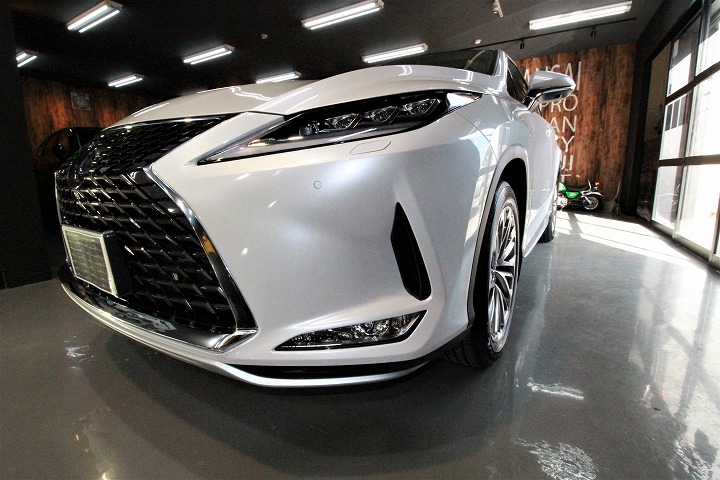 鳥取県よりレクサスRX450hのご入庫です!ボディカラーはホワイトノーヴァガラスフレーク!施工はボディ