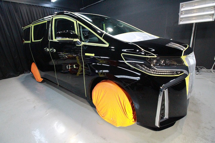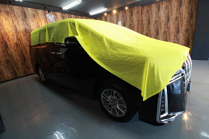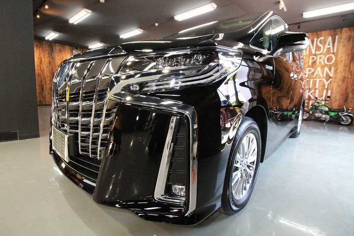 大阪府茨木市よりトヨタアルファードのご入庫です!ボディカラーはトヨタのブラック202!施工はボディ