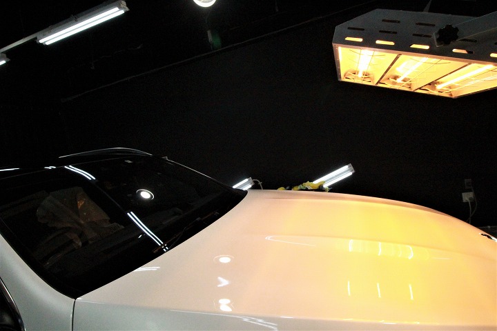 はダイヤモンドホワイト。施工はボディにはハイモースコートザ・ネオ(超撥水)/ホイールコーティング