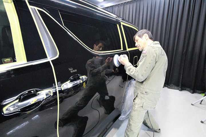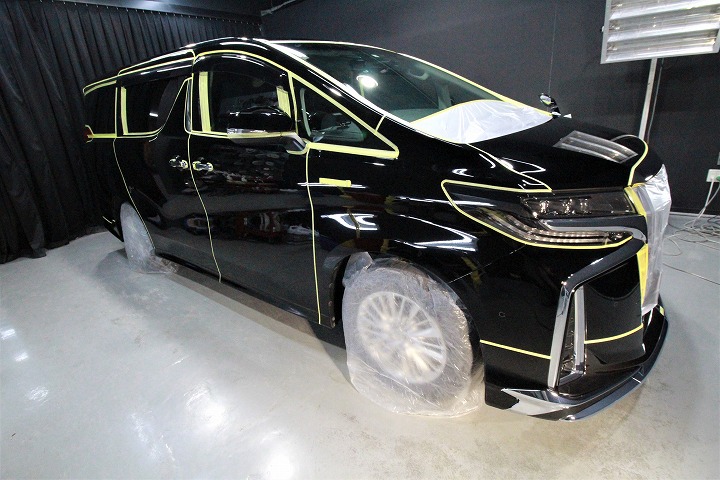 大阪府守口市よりトヨタアルファードのご入庫です!ボディカラーはトヨタのブラック202!施工はボディ
