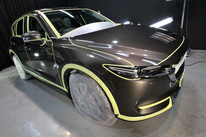 兵庫県よりマツダCX5のご入庫です!ボディカラーはチタニウムフラッシュマイカ!施工はボディには