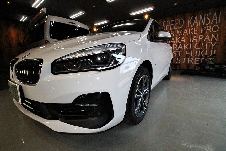大阪府吹田市よりBMW 218i グランツアラーのご入庫です!ボディカラーはアルピンホワイト!施工はボディ