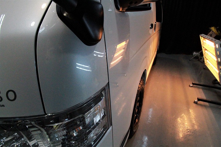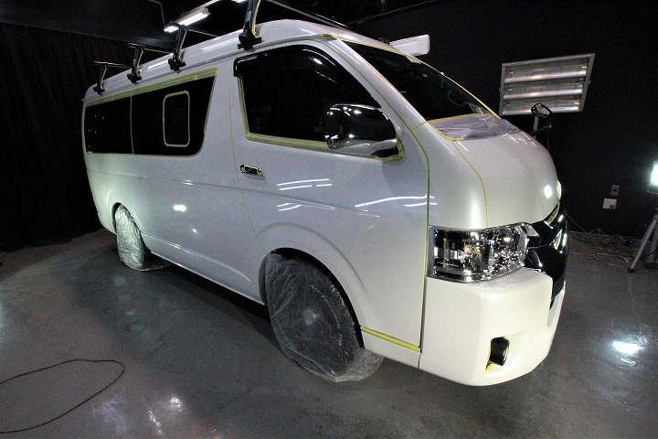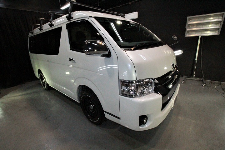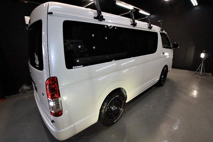 ホワイトパール!施工はボディ上面にはセラミック4層/サイドにはハイモースコートザ・ネオ/ウィンドウ全面