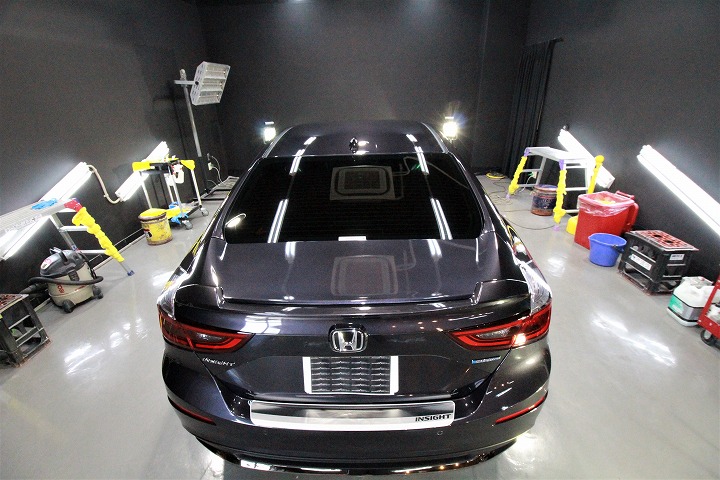 施工はボディにはハイモースコートザ・グロウ/ウィンドウフィルム断熱シルフィード、サイド20% リア15%