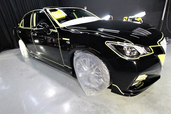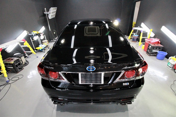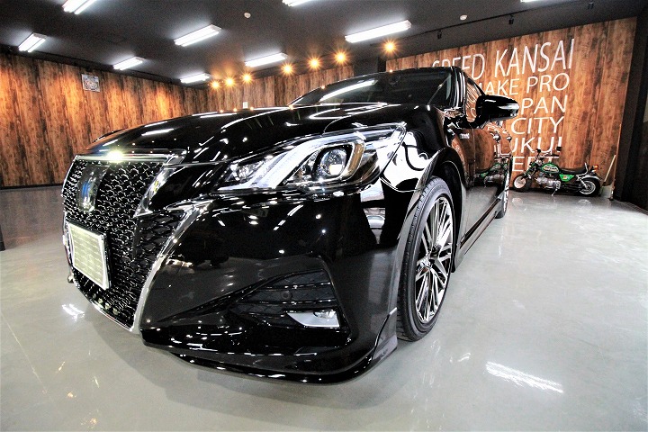 大阪府高槻市よりトヨタクラウンアスリートGのご入庫です!ボディカラーはトヨタのブラック202!施工は