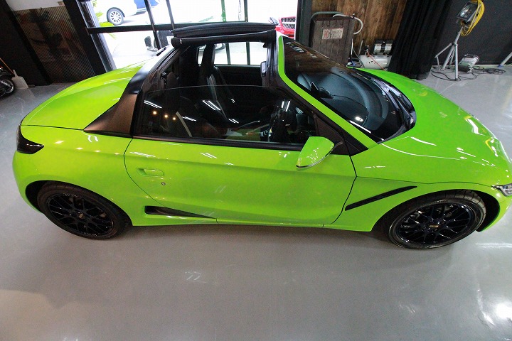 大阪府箕面市よりホンダS660のご入庫です!ボディカラーはアクティブグリーンパール!施工はボディには