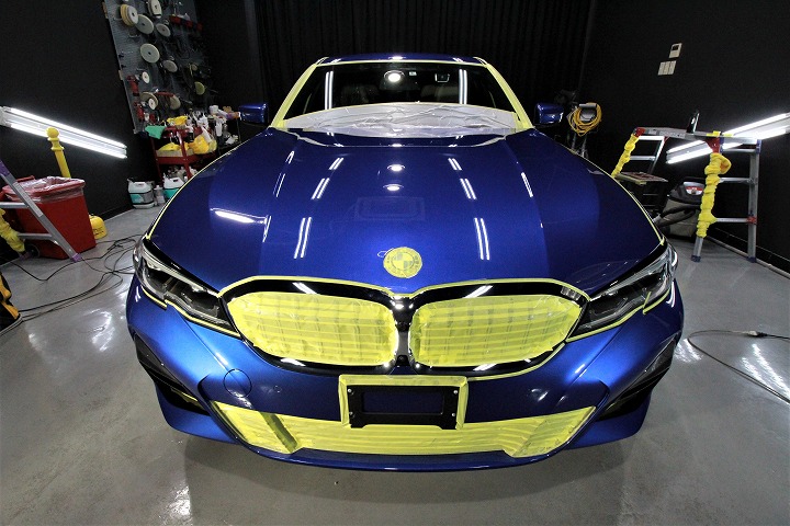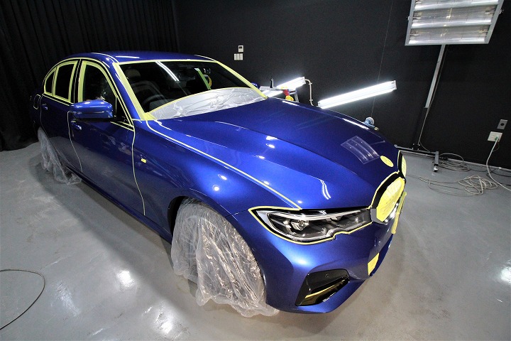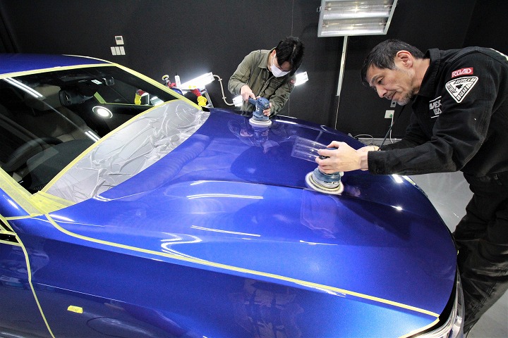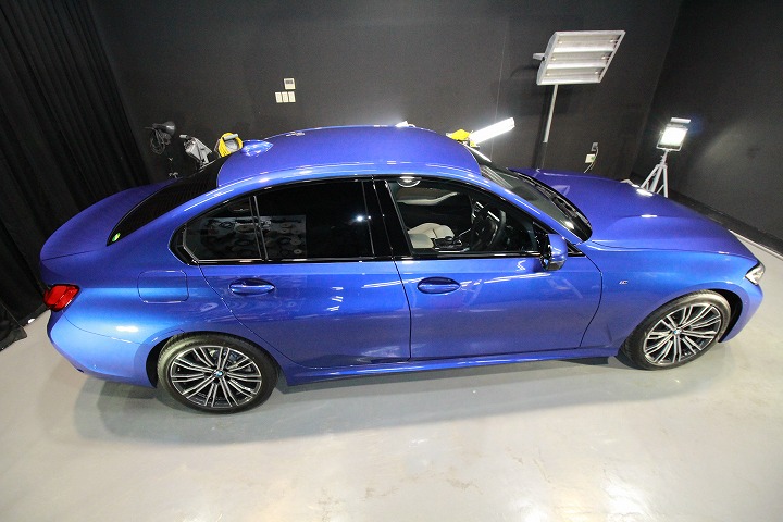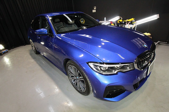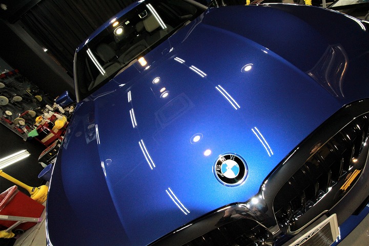 ブルーメタリック!施工はボディにはセラミックトリプルコート+1(4層)/ホイールコーティング/室内革