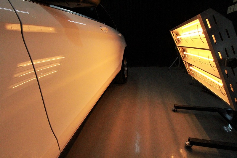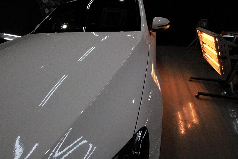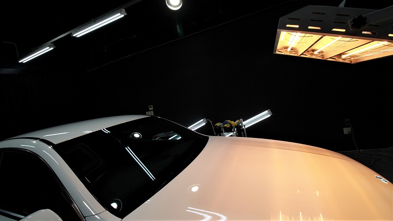 ホワイト(ソリッド)!施工はボディにはハイモースコートザ・ネオ(超撥水)/ホイールやフロントガラス
