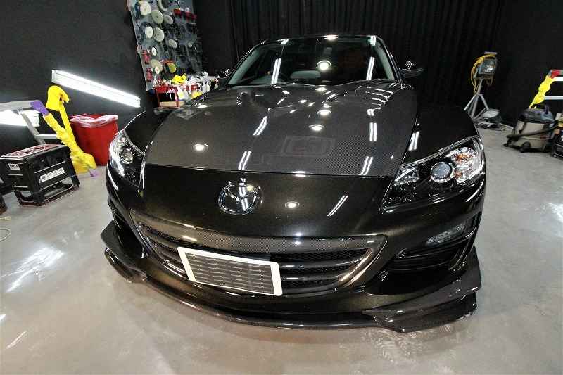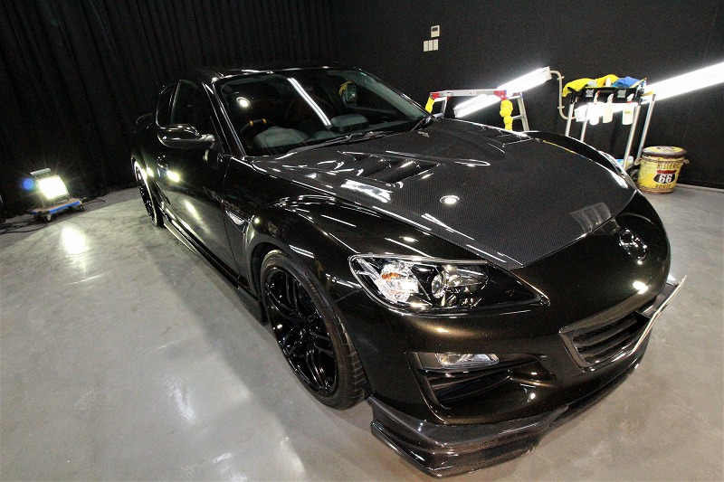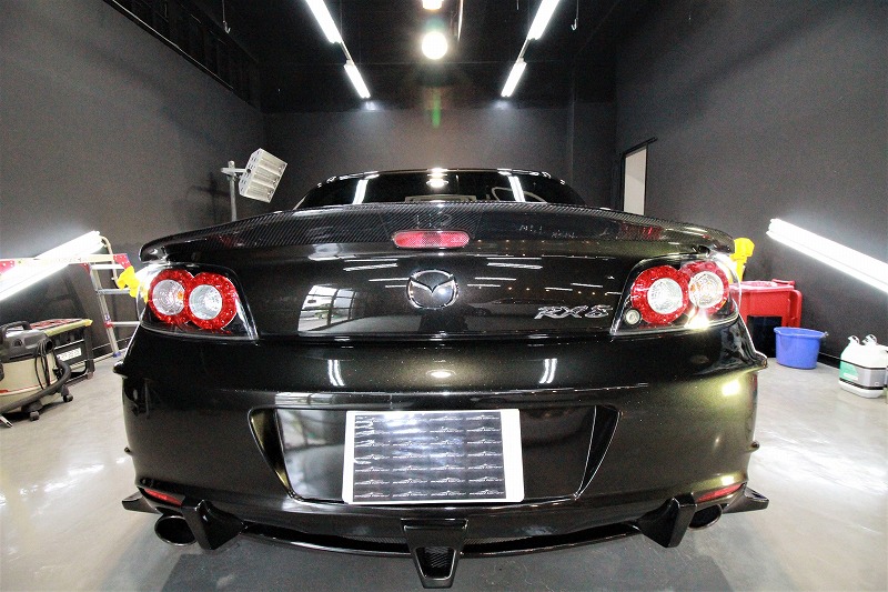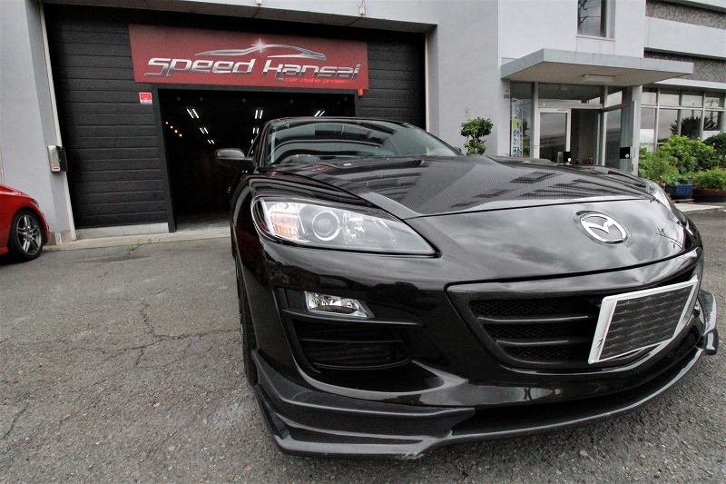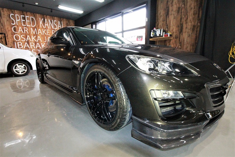 大阪府茨木市よりマツダRX8 スピリットR のご入庫です!ボディカラーはブラックマイカ!施工はボディ