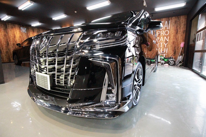大阪府箕面市よりトヨタアルファードのご入庫です!ボディカラーはブラック202!施工はボディには